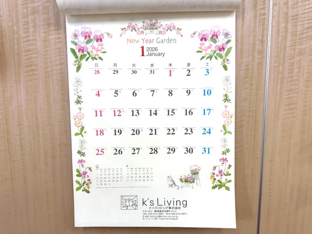 12月に入り何かとやらねばならないことがあるのですが、まず最優先するのが過去10年間我社でお取引を頂いたお客様宅へ2026年カレンダーをお届けしています。全てのお客様に直接お届けしたいのですが、少し遠いお客様26名様は郵送にさせて頂き、126件は直接お届けしました。来年のカレンダーも作家中神久子さんの『ガーデニング』をチョイスしました。お届けしたお客様より早速電話やメールを頂き、中には毎年楽しみにしていてリビングや玄関の『定位置』に飾っていると言っていただき嬉しい気持ちになります。