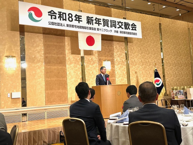 所属する東京都宅地建物取引業協会の第12ブロック新年賀詞交歓会に出席しました。多摩地区の旧5支部の代表役員をはじめ関係団体代表や衆参議員先生などが京王プラザホテル八王子に集っています。